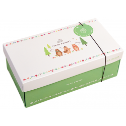 特選紙張製作長條形蛋糕彌月禮盒,送禮大方,上下蓋設計開關方便;各式年節禮盒、公版彩盒等都適用。